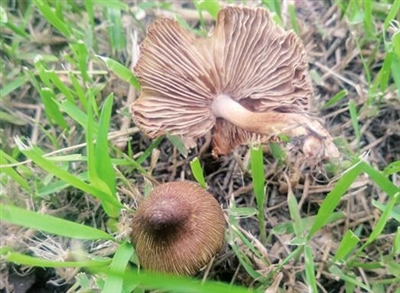 子实体小菌盖直径2—6厘米,扁半球形、钟形至斗笠形,顶部凸起,黄褐棕色纤毛状长条纹幼时有白色纤毛,边缘开裂。菌肉污白色。菌褶浅灰褐至褐黄色,边缘白色,直生。菌柄长3—8厘米粗0.5—1.2厘米,污白至浅黄褐色,有纵条纹,弯生,基部稍膨大且色浅内部实心。秋季生林地上。
