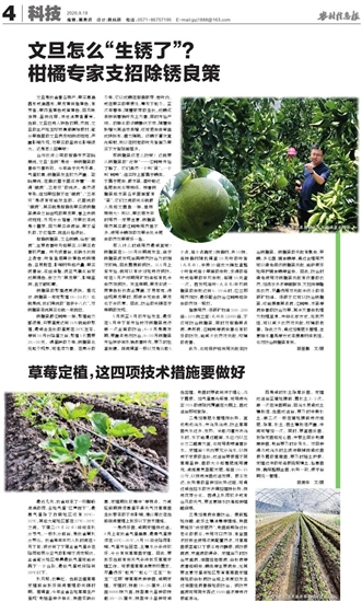 文旦是我省著名特产,果实高扁圆形或扁圆形,果皮黄到橙黄色,有芳香,果肉呈黄色或蜜黄色,因风味独特、品质优异,深受消费者喜爱。当前,文旦已进入转色初期,然而,文旦的主产地玉环市清港镇垟根村,部分果园里的文旦表皮却锈迹斑斑,严重影响外观,对果实的品质也影响很大。这是怎么回事呢?