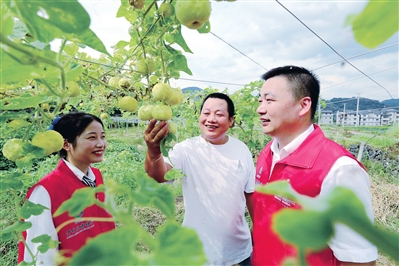 日前,笔者来到开化县杨林镇华利家庭农场,看到10余亩“福寿果”已挂满枝头。“福寿果”产自我国台湾,既可当水果吃,又可加工成酱制品或糖渍品。今年,该农场引种了12亩“福寿果”,预计可产果子5万个,已被海南一客商按每个3元的价格提前订购。