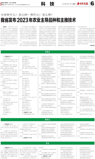 本报讯 今年种什么?怎么种?养什么?怎么养?农民朋友快来了解一下吧。为深入实施科技强农、机械强农行动,加强农业新品种、新技术、新机具推广应用,省农业农村厅近日推介发布了2023年农业主导品种129个、主推技术115项,其中种植业主导品种84个,主推技术73项;畜牧业主导品种25个,主推技术21项;渔业主导品种20个,主推技术15项;综合类主推技术6项。
