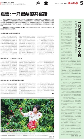 这只水蜜桃,不仅让中堡溪村“十里桃园”的知名度越来越响,还带动了周边村庄餐饮业、民宿业等旅游业态的发展,带旺了农产品销售。村民们用自己的勤劳与智慧,让蜜桃变成了“致富果”。