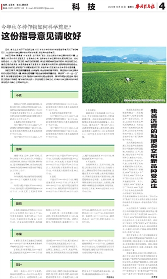 日前,省农业农村厅下发《浙江省2023年秋冬种作物科学施肥指导意见》(下称《意见》),对当前秋冬种主要作物如何科学施肥,提出具体指导意见。