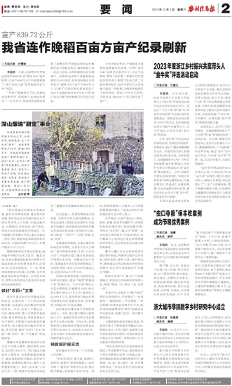 本报讯 11月27日上午,由浙大城市学院、农业农村部农村经济研究中心共同设立的浙大城市学院数字乡村研究中心成立仪式在杭举行。