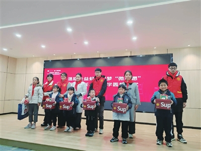 温州大学学生为丽岙留守儿童送上新年礼物。