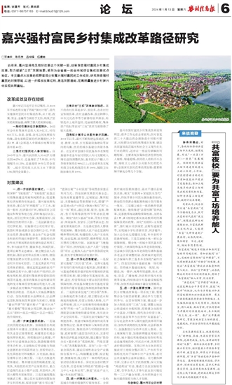 嘉兴牢记习近平总书记嘱托,从2009年开始连续实施了四轮“强村计划”,迭代实施强村富民乡村集成改革,从土地、政策、资金、金融等方面给予支持,构筑了坚实的发展基础,凝聚了强大的发展动能。