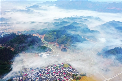 1月6日,淳安县汾口镇杨旗坦村,薄雾缥缈,风景如画。近年来,淳安县持续深化和美乡村建设,不断优化农村人居环境,扮靓美丽乡村,提升农村居民的生活品质。