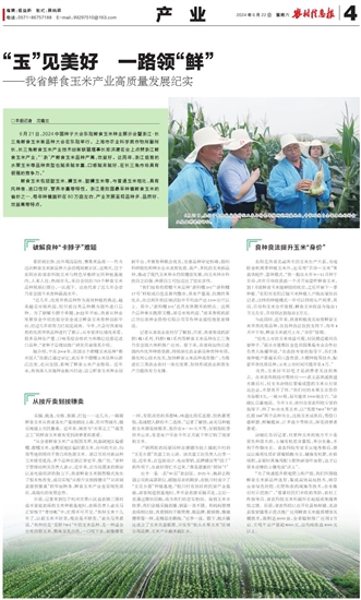据介绍,早在2004年,我国首个甜糯玉米品种“都市丽人”在浙江通过审定,此后多个甜糯玉米品种从浙江出发、走向全国,影响了鲜食玉米产业格局。近年来,我省深入实施种业振兴行动,设立鲜食玉米种业创新平台,开展育种联合攻关,完善品种审定标准,组织科研院校和种业企业选育优质、高产、多抗的玉米新品种,推动了现代玉米种业持续健康发展,向玉米种业科技自立自强、种源自主可控迈出了坚实步伐。