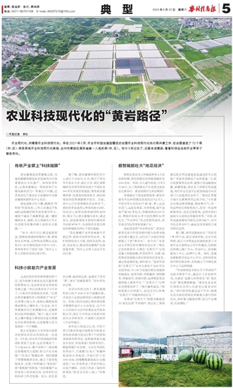 农业现代化,关键是农业科技现代化。早在2021年5月,农业农村部全面部署启动全国农业科技现代化先行县共建工作,在全国遴选了72个县(市、区),探索县域农业科技现代化新路,台州市黄岩区是我省唯一入选的县(市、区)。如今3年过去了,记者走进黄岩,看看科技给当地农业带来了哪些变化。