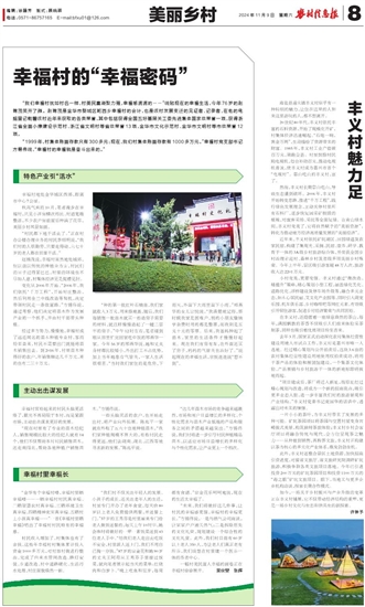 “金华有个幸福村喽,幸福村里晒幸福喽……一晒幸福村村民真幸福、二晒智慧农村真幸福、三晒环境卫生真幸福、四晒精神充实真幸福、五晒村上小孩真幸福……”一首《幸福村里晒幸福》唱出了幸福村村民特有的幸福感。