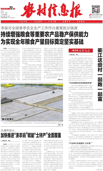 王通林指出,要重点发力,加快推进“浙农码”赋能“土特产”全面覆盖。聚焦“土特产富”全链发展,以农产品品质提升、品牌提能为导向,以打造农产品身份标识、消费者信赖标志为要点,以一码赋能、全链追溯为手段,充分发挥“浙农码”在农业生产领域标识、溯源、预警等功能,提升“码汇大数据、码通大市场、码优大服务”数字化管理效能,加快建立农产品优质优价发展机制。要准确把握“统”的要求,统一农产品赋码底座数据、“浙农码”承诺证开具工作,探索“多码合一”统建模式。要聚力做好“全”的文章,做到赋码主体应赋尽赋、赋码产品应开尽开、使用过程环节应用尽用。要全力抓好“实”的举措,抓实基地数字化改造提升、码上赋能数字基础、品牌塑形赋能、赋码用码生态建设,把“浙农码”打造成浙江现代农业的新标识、新优势。要全面营造“浓”的氛围,全方位营造市民和主体支持、参与、共享“浙农码”赋能“土特产”的浓厚氛围。
