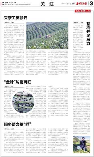 为保障春茶生产,余杭区构建了“三级联动”服务体系,由农业、市场监管、气象等部门联合组织春茶生产技术服务队,建立区级统筹、镇街协调、村企落实的三维联动机制。通过需求清单管理、响应时效承诺、定向跟踪服务等措施,及时、精准解决生产问题。