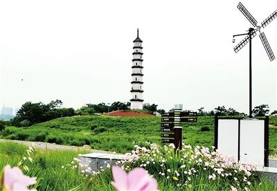“现在我们村里最大的卖点,就是江边看花海、观赏古塔。”孙渊泉说,花海占地面积300亩左右,是根据沿江两岸的地形自然布局的,它将景观桥、空中步道、盒子空间、立柱风车点缀其间,停车场、洗手间等配套设施一应俱全。花海的主栽品种是粉黛乱子草,也间隔栽种几个不同品种的花。孙渊泉介绍,粉黛乱子草在10月份开花,花期一个月左右,“盛开时,看花海的游客每天有上千人。”
