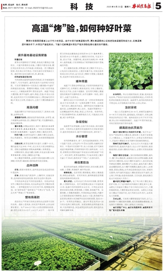 夏季叶菜是居民餐桌上必不可少的菜品。由于叶菜不耐高温强光照,夏秋高温期间以设施遮阳降温避雨栽培为主,在高温高湿环境条件下,叶菜生产面临挑战。下面介绍耐高温叶菜生产相关绿色轻简化增效技术措施。