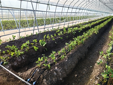 二是把好定植成活关,关注天气变化适时定植。9月上旬,我省大部分地区平均气温较常年明显偏高,草莓花芽分化进程较常年延后。建议种植户在农技人员和供苗单位的指导下,根据品种熟性、小苗长势、天气状况等综合考虑,确保花芽开始分化后定植,必要时可适当推迟定植,确保花芽已分化。定植前提前加盖遮阳网(遮光率70%),降低地块温度,保持土壤湿度,以提高缓苗期成活率和促进花芽分化,避免重现2021年大面积的“雄株”现象。据调查,今年大部分地区“建德红”“粉玉”等早熟品种宜于9月中上旬定植,“红颊”“越秀”等中晚熟品种9月18日左右定植。定植后的缓苗期应保证根系湿润,促进新根抽发,推荐使用滴灌,避免漫灌。