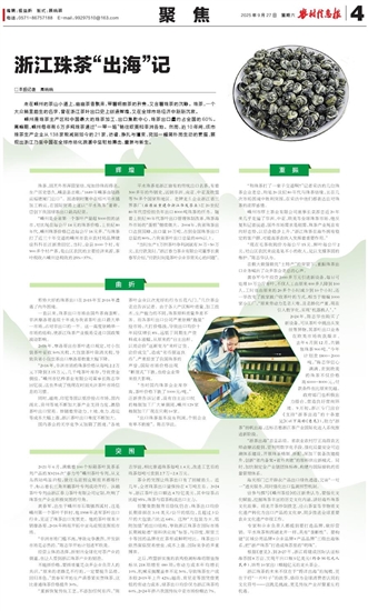 专家和企业负责人都提到要打造品牌,做好营销。平水珠茶和西湖龙井一样,具有“垄断性”。要构建“区域公用品牌+企业品牌+产品品牌”三级出海体系,把“浙产珠茶”打造成珠茶里的“明珠”。
