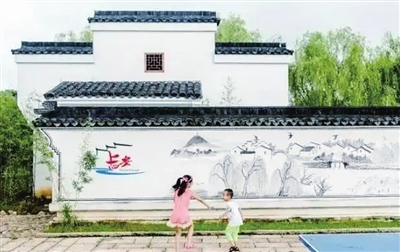 在气派的石牌坊下,一条历史悠久的石板路曲折蜿蜒。路的两旁,徽派风格的古老房屋错落有致地伫立,一池清澈的活水环绕着村庄,轻轻荡漾。偶尔,有零星的游客划着小筏穿梭其中,清脆的笑声在山水间回荡,为古村增添了生机与活力。