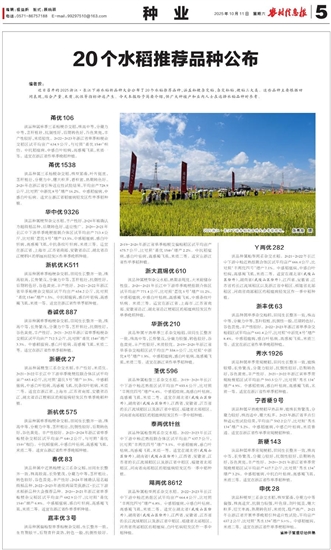 近日召开的2025浙江・长江下游水稻新品种大会公布了20个水稻推荐品种,涵盖籼粳杂交稻、杂交籼稻、粳稻三大类。这些品种主要根据田间表现,结合产量、米质、抗性等指标评选产生。今天本报给予简要介绍,供广大种植户和业内人士在选择水稻品种时参考。