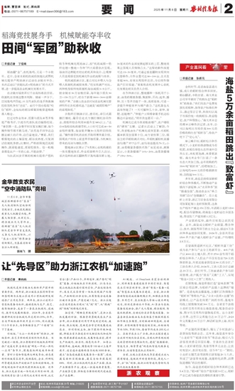 机械化是助力粮油大面积单产提升的重要手段。两年前,浙江被农业农村部等四部委明确为丘陵山区适用小型机械研发制造推广应用先导区。两年来,浙江以适用小型农机装备为杠杆,撬动农机与生产、农艺、数智相融合,走出了一条农业机械化、设施化、数字化发展新路径。2024年,全省农作物耕种收综合机械化率达到83.09%;今年,全省早稻机插率跃升至61.33%,同比提高19.3个百分点,为夺取粮食生产“十连增”打下了基础。