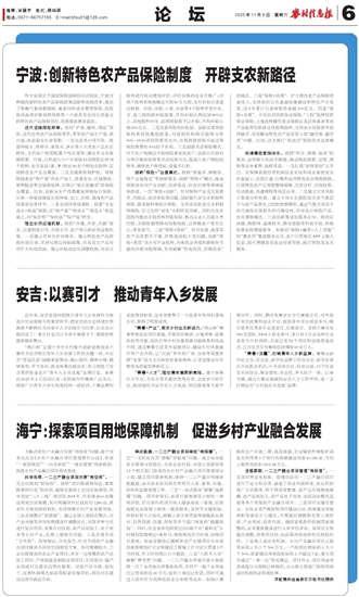 作为全国首个国家保险创新综合试验区,宁波市积极探索特色农产品保险政策创新和体制改革,推出了杨梅气象指数保险、畜禽饲料成本期货保险、抗疫保供蔬菜价格指数保险等一大批具有全国示范意义的特色农产品保险项目,助推强农惠农富农。