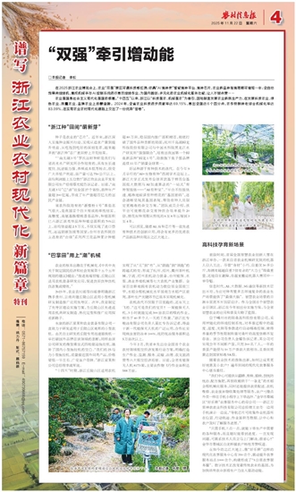 农业强国是社会主义现代化强国的根基。“十四五”以来,浙江以“科技强农、机械强农”为牵引,因地制宜发展农业新质生产力,在发展科技农业、绿色农业、质量农业、品牌农业上扬鞭奋蹄。2024年,全省农业科技进步贡献率达69.15%,高出全国近6个百分点,农作物耕种收综合机械化率达83.09%,在实现农业农村现代化道路上交出了一份优异“答卷”。