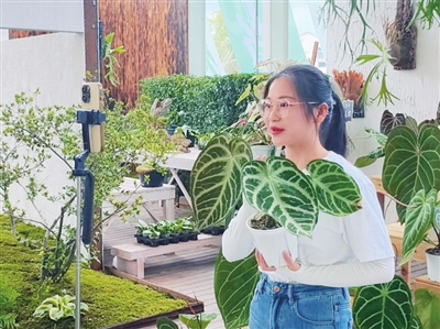 “各位花友看这株‘钻石叶脉’花烛,今天首发出售,库存只剩200株啦!”镜头前,廖万甜的声音清脆有力,直播间订单数据实时跳动。走进花棚,400多种热带植物郁郁葱葱,藤蔓缠绕间透着热带风情,很难想象这片“微型热带雨林”的前身,是闲置多年的普通农田。