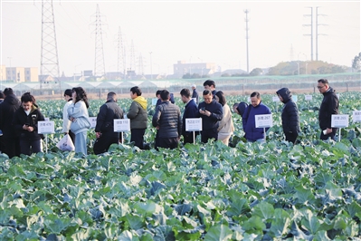 农技人员观摩余姚市康绿蔬菜专业合作社的西兰花基地。