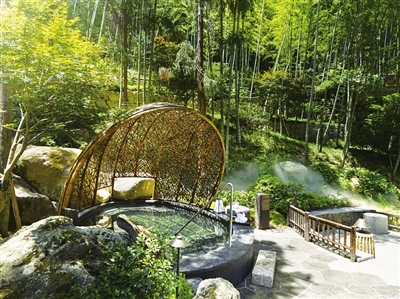 为了让游客更好地感受永嘉特色,酒店把本地土猪肉、高山蔬菜、新鲜水果搬上餐桌,让味蕾邂逅山野本味。“我们主打‘自然疗愈’IP,不仅要让游客泡好温泉,更要让他们在山林间放松身心、回归本真。”温州楠溪江鸿居温泉酒店总经理张禹告诉记者,基于这一理念,度假区策划了自然徒步、山间骑行、时令采摘等一系列体验活动,推动游客从“一日游”向“过夜游”转变。