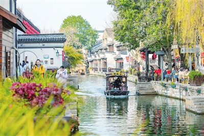 1月28日,在湖州市南浔古镇,游客坐船游览冬季江南美景。屠旭东 摄