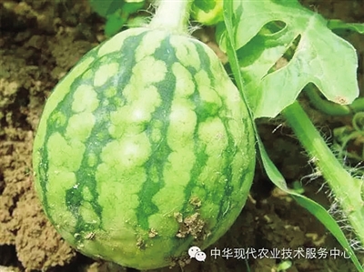 西瓜细菌性果斑病又称细菌斑点病、西瓜水浸病、果实腐斑病等,苗期和成株期均可发病,但成熟时发病较重,开始在果实表面有灰绿色至暗绿色水渍斑点,后迅速扩展成大型不规则状,变褐或龟裂,引起果实腐烂,分泌出一种粘质琥珀色物质。