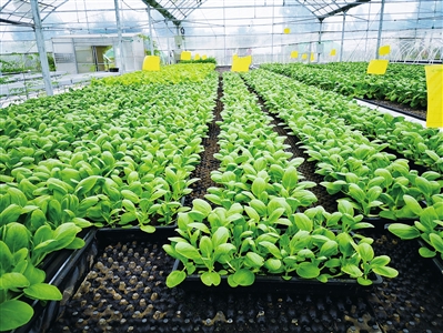 大棚蔬菜生产中用黄板诱杀害虫。 胡美华 摄