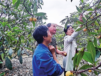 | 余杭区农业农村局农技人员在该区塘栖镇水果种植基地进行技术指导。(资料图片) |