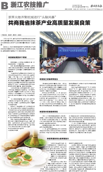 7月20日下午,省农业农村厅与省供销社联合召开抹茶产业高质量发展座谈会,邀请涉茶科研机构专家、茶叶企业代表等就浙江抹茶产业如何高质量发展进行“头脑风暴”。
