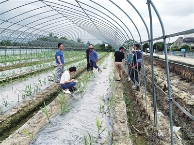 | 省市植保专家在温岭调查甘蔗白条病发生情况。 |