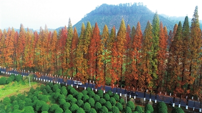 初冬时节,开化县乡村公路桃下线景美如画,沿线成排的金黄色水杉树,加上外围的绿色,引得摄友、驴友、跑团等纷纷前来打卡。全长20多公里的桃下线,途经10多个村庄,被当地群众称为生态路。徐曙光 郑勤峰 摄