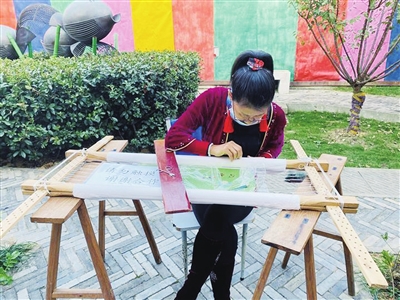 | 绍兴市五星级人才吴丽恩正在刺绣 |