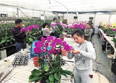12月8日,宁波市镇海区花无缺花木有限公司生产基地内一片繁忙景象,花艺师正忙着给蝴蝶兰造型,为即将到来的年宵花旺季作准备。新年期间,该基地将有5万株蝴蝶兰供应市场。