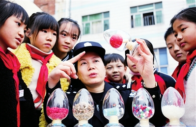 近日,台州市路桥区路南街道派出所民警来到辖区天长学校向学生宣传毒品危害,教育学生认识毒品,自觉远离毒品。 蒋友青 摄