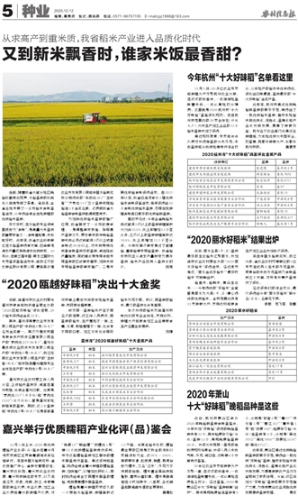 “2020丽水好稻米”结果出炉