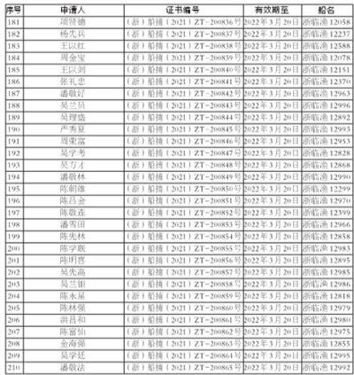 渔业职务船员证书核发