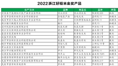 近日,由省农业农村厅、省粮食和物资储备局联合开展的2022浙江好稻米推荐结果公布,淳山淳水牌淳山淳水米等16个产品获金奖,妙富牌江南大米等20个产品获优质奖。这是我省第7次开展浙江好稻米推荐活动。