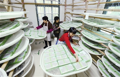 近日,德清县莫干山镇高峰村蚕种场首批2万张春蚕种进入催青阶段,工人们忙着进行蚕种催青,然后将蚕种发放给蚕农,全面开启“春蚕季”。谢尚国 摄