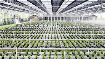 6月8日,在绍兴市柯桥区漓渚镇棠棣村的兰花数字工厂,工人在管护兰花。该兰花数字工厂总建筑面积4608平方米,通过物联网和AI智能技术,实现温度、湿度自动调节,为兰花植株提供精准的养分、水肥和良好生长环境,实现大棚四季恒温、兰花全年生产,助力农民增收和乡村振兴。谢尚国 摄