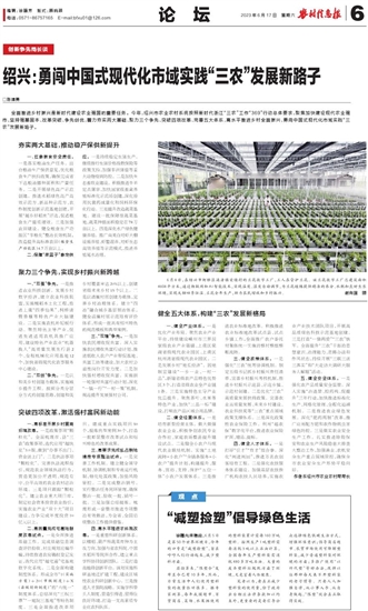 绍兴:勇闯中国式现代化市域实践“三农”发展新路子