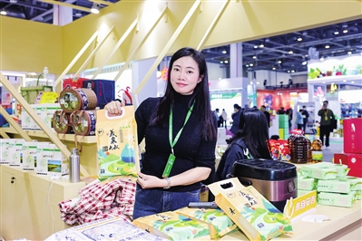 “义泉大叔”生态大米在省农博会上展销。(资料图片) |