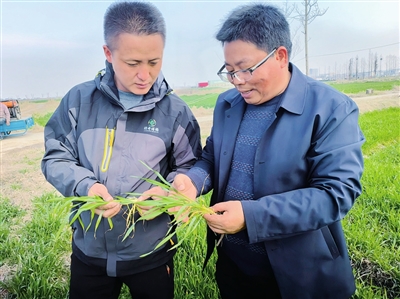 以往老徐的麦田只打两次农药,但今年由于3月下旬温度比往年偏高,小麦苗数比往年足、密度高,易发生病虫害,所以朱春弟建议老徐根据天气情况,在育穂后期、扬花期、灌浆期分三次用药。“小麦拔节育穗期是奠定小麦产量和品质的关键时期,加强病虫害防治至关重要。”朱春弟向记者解释说。