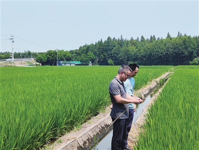 | 马祺(左)在查看 水稻二化螟发生情况。 |