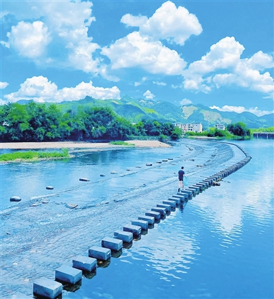 嵩溪古村的原生态保存良好,村子建于小溪旁边,因此即使夏季,也是格外凉爽。家家户户推窗可观溪,推开门就能玩水摸虾,城市里最难得的快乐,在这里唾手可得。村庄中的房屋大多是黑瓦白墙,高耸的马头墙,连片的屋瓦房,门前溪水潺潺,望得见山,看得见水,踩得到云。本报综合