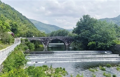 新昌班竹古村坐落于天姥山主峰班竹山的山麓下,被称为“天姥门户”,是古代天姥、天台和临海古驿道上的一座重要村落。浓得化不开的绿意中,一座司马悔桥横跨两岸。桥体藤蔓缠绕,青苔遍布,脚下便是潺潺的水声。