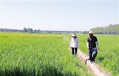 | 近日,在金华市婺城区白龙桥镇择住邻村,农技人员正在查看晚稻生长情况。 |