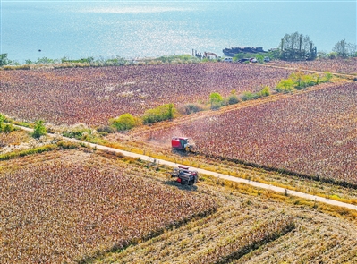 11月26日,长兴县煤山镇新源村的高粱地迎来丰收季,农民加紧收割。